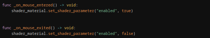 Which then could enabled or disabled with simple Area2D mouse over and mouse exit events: